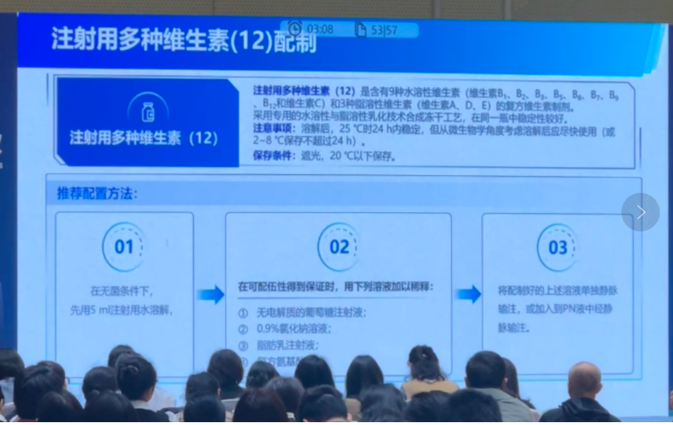 其中,多種維生素12是目前國(guó)內(nèi)市場(chǎng)應(yīng)用廣泛的靜脈復(fù)合維生素,也是國(guó)家基本藥物,醫(yī)保乙類藥品。衛(wèi)美佳?注射用多種維生素(12)使用專利的乳化凍干工藝,突破了12種維生素于一瓶的技術(shù)難題,實(shí)現(xiàn)了水脂合一的一體化穩(wěn)定的維生素制劑。衛(wèi)衡素?多種微量元素(40ml),進(jìn)行了配方優(yōu)化,適合實(shí)際診療需求。新近上市的衛(wèi)微丹?多種微量元素(III)成人兒童均適用,符合最新的歐洲和中國(guó)指南推薦。