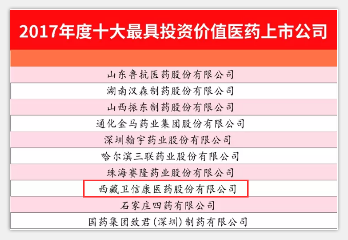 熱烈祝賀衛(wèi)信康醫(yī)藥榮獲“2017年度十大最具 投資價值醫(yī)藥上市公司”稱號