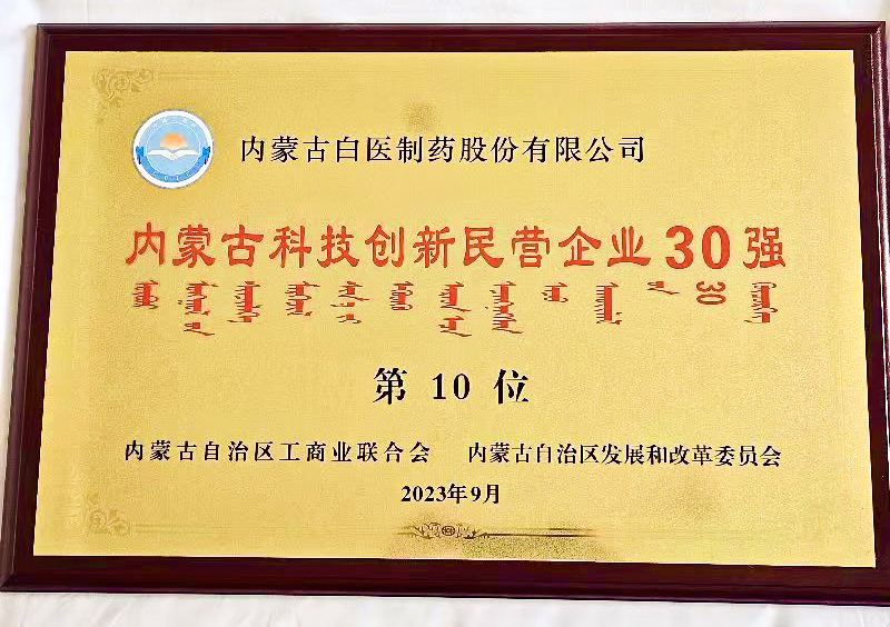 【喜訊】衛(wèi)信康所屬白醫(yī)制藥榮獲“2023內(nèi)蒙古科技創(chuàng)新民營企業(yè)30強(qiáng)”
